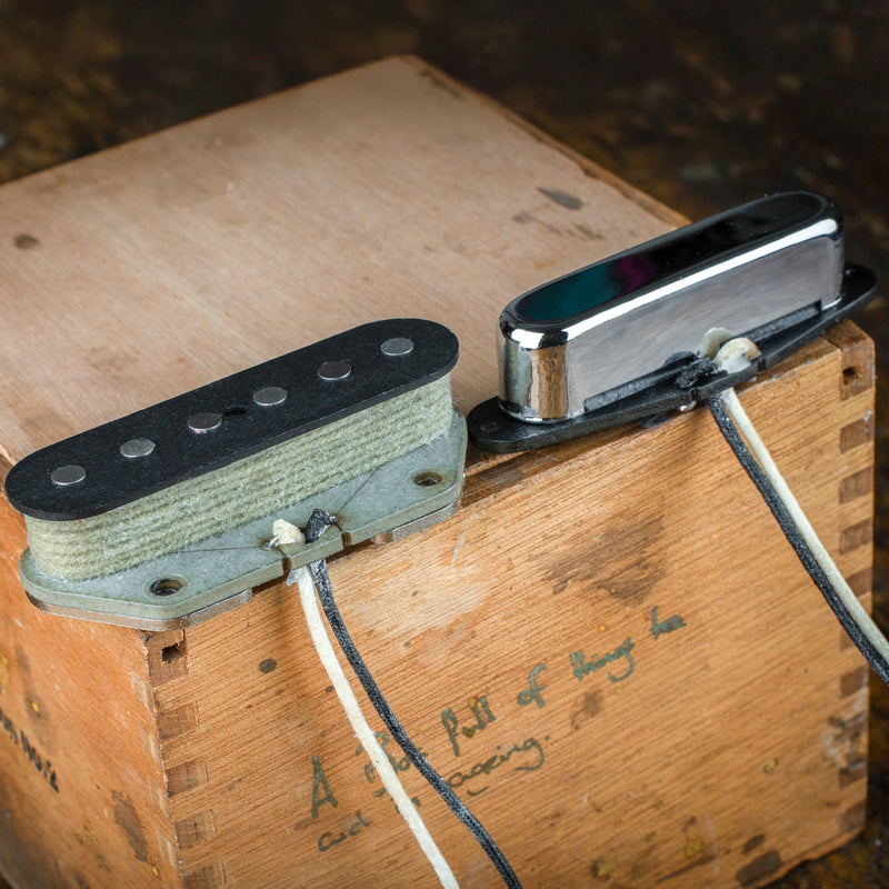 We’ve voiced the neck pickup for a chimey, bell-like tone, somewhat reminiscent of Stratocaster neck pickup and just a tad more open than most vintage Tele neck pickups. The bridge pickup is designed to complement this, with all the twang you would expect of a vintage style pickup, but an ever so slightly sweetened high end. The result is a sparkling sound that is open, percussive and rich in harmonics without ever suffering from the dreaded Telecaster ‘ice-pick’. The two pickups blend together superbly for a bright telecaster middle position.